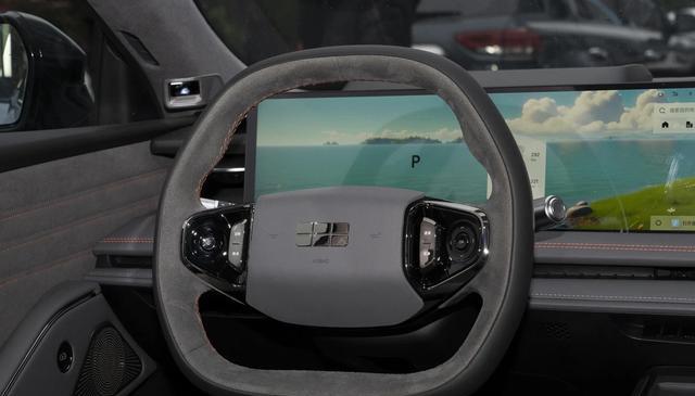 至于内饰,银河E8的设计也是很有个性,主要还是中控台上那块超大的屏幕,尺寸为45英寸,而且分辨率达到了8K。不仅尺寸震撼,分辨率也高,加上Flyme Auto车机系统的加持,操作体验确实不错,比老款提升不是一星半点。两幅式上下平底的方向盘个人认为夸张了些,对于年龄偏大的人群可能不容易适应,但很明显银河E8的主力群体是年轻人,也算可以理解。